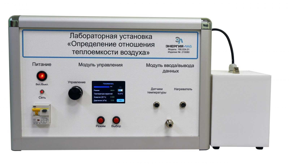 Лабораторная установка предназначена для проведения лабораторной работы в высших и средних учебных заведениях для определения теплоемкости воздуха.