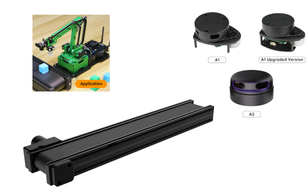 Учебно-лабораторный комплект для разработки автономных мобильных роботов включает в себя конвейерную ленту для создания производственных линий к роботизированным манипуляторам Техник и комплект дополнительных элементов для расширения возможностей.