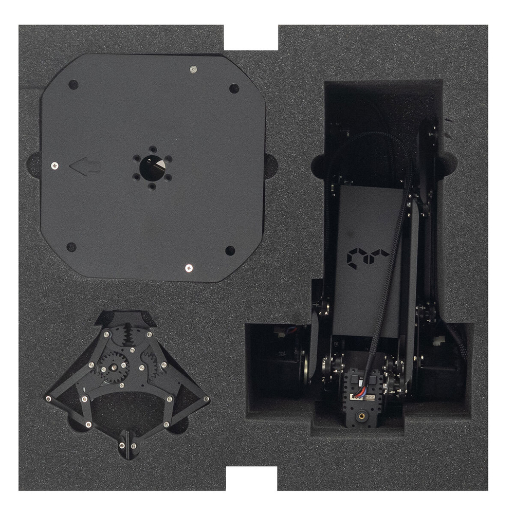 - Манипуляционный РТК выполнен на базе продвинутой версии сервоприводов Dynamixel серии ХМ.