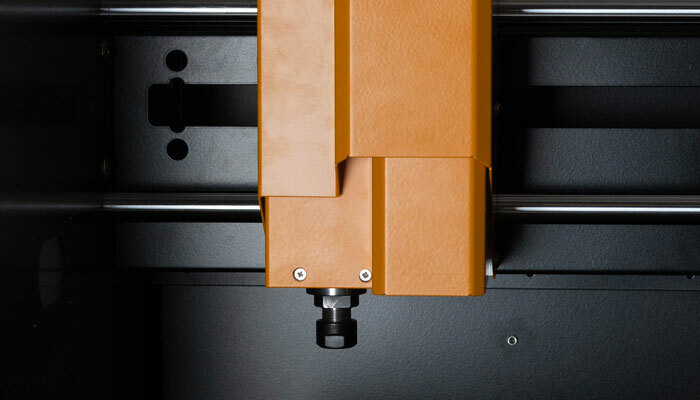Большое внимание производитель уделил рабочему инструменту - в конструкции шпинделя реализована конструкция с отдельным мотором и отдельно шпинделем, что позволяет снизить биения при обработки, а компенсация люфта позволяет повысить точность обработки по оси Z.