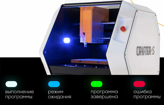 Станок оборудован световой индикацией - в зависимости от статуса работы, зона обработки будет подсвечиваться разными цветами.