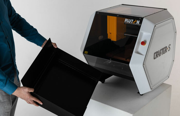 Полностью закрытая область обработки позволяет обеспечить безопасность работы, снизить уровень шума при обработке и сохранять рабочее пространство в чистоте, а поддон для сбора стружки сделает уборку станка комфортной.