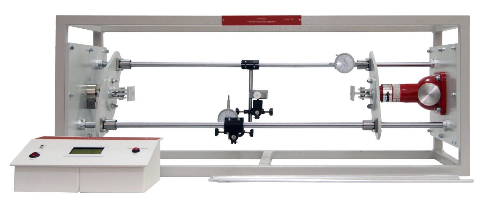 Учебный комплекс «Изучение сжатого стрежня» лабораторной установки «Влияние условий закрепления сжатого стержня на форму упругой линии при потере устойчивости» предназначен для проведения цикла лабораторно- практических занятий дисциплин «Сопротивление материалов», «Металлические конструкции» и смежных технических дисциплин.