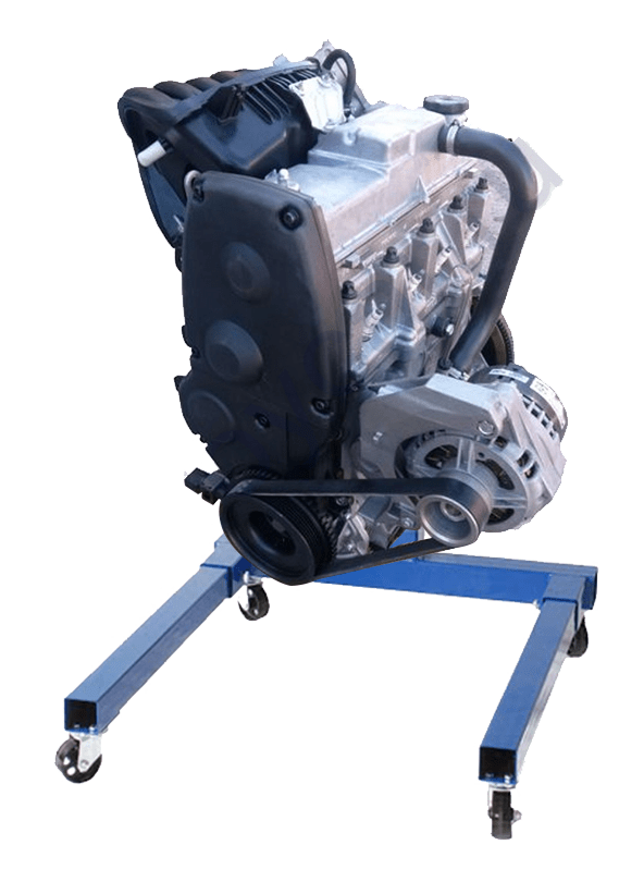 Стенд представляет собой полнокомплектный 16-ти клапанный бензиновый двигатель легкового автомобиля производства ВАЗ с навесным оборудованием, установленный на кантователе. Двигатель полностью подготовлен для многократной сборки-разборки. Кантователь представляет собой металлическую конструкцию, обеспечивающую удобство при проведении различных работ связанных со сборкой-разборкой ДВС. Двигатель поставляется без технических жидкостей.