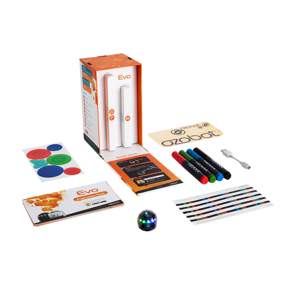 Ozobot Evo – это умный робот, который, играя и разговаривая, учит ребенка основам программирования. Робот использует три способа программирования, а также взаимодействует с бумагой и маркерами. Он имеет выразительный язык звуков и световых сигналов. Ozobot Evo оснащен оптическими датчиками и датчиком приближения, так что он обходит препятствия и распознает цвета. Роботом можно управлять с помощью приложения Ozobot Evo.
