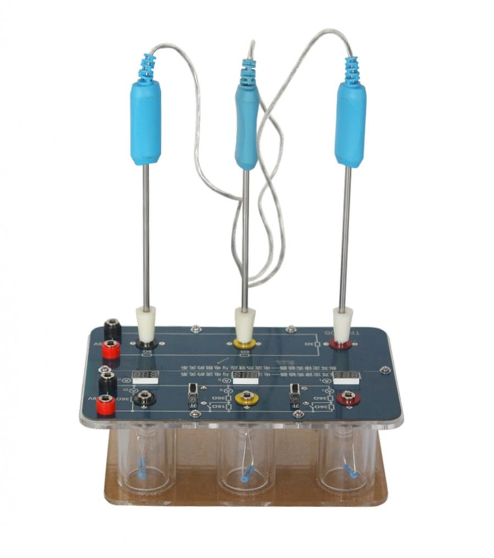 Используется с датчиком температуры и позволяет измерять зависимость между тепловым эффектом и током. В соответствующем месте панели имеется отверстие для датчика, в которое вставляется провод сопротивления, что обеспечивает высокую адаптивность датчика. С помощью датчика температуры он может количественно отражать взаимосвязь между тепловым эффектом тока и током, сопротивлением проводника и временем включения. Значительные изменения данных происходят в течение одной минуты и представляются в режиме реального времени на системных терминалах Windows, Android и iOS.