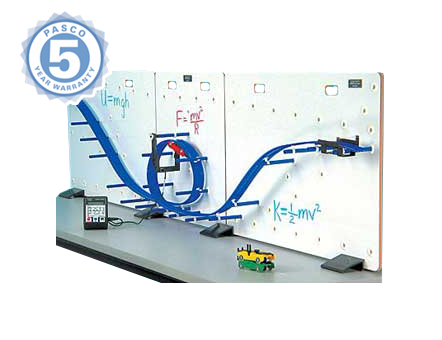 Установка "Сохранение механической энергии" позволяет проверить закон сохранения энергии путем измерения потенциальной и кинетической энергии автомобиля, путешествующего по холмам и петлям на изогнутой дорожке.