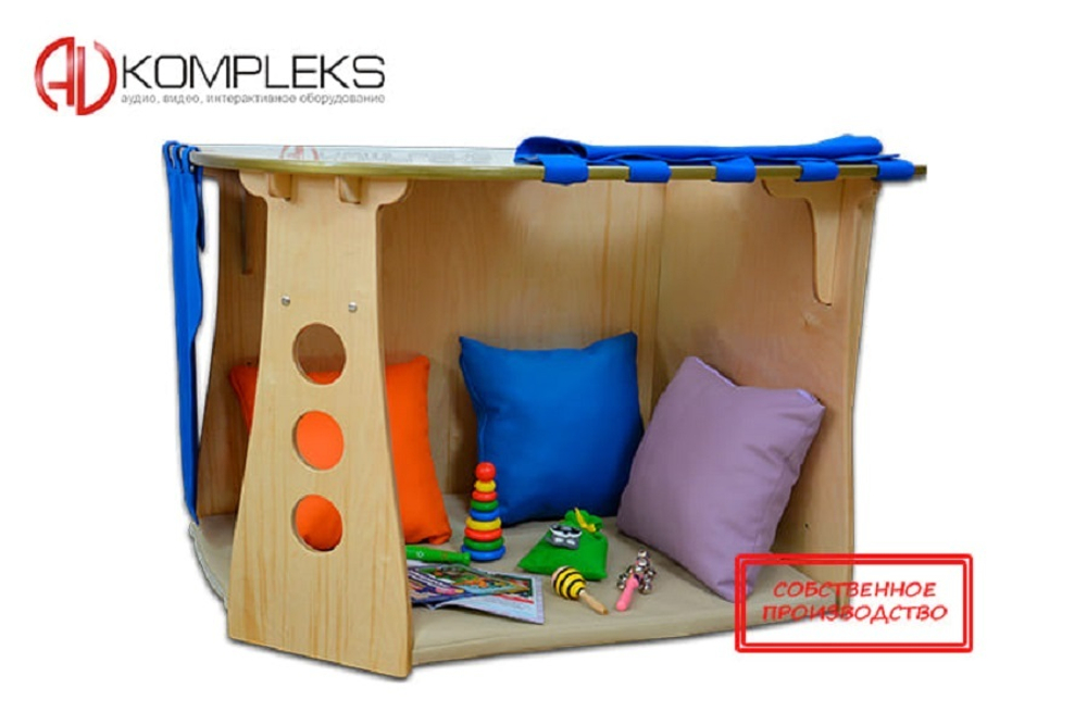 «AVKompleks Уютное местечко» используется для обустройства детских игровых или сенсорных комнат. Это угловой домик, внутри которого легко размещаются мягкие модули. Подходит для малышей от трех лет. Изделие заинтересует каждого ребенка тем, что он сможет там отдыхать, играть и хранить игрушки.