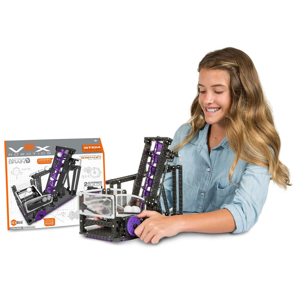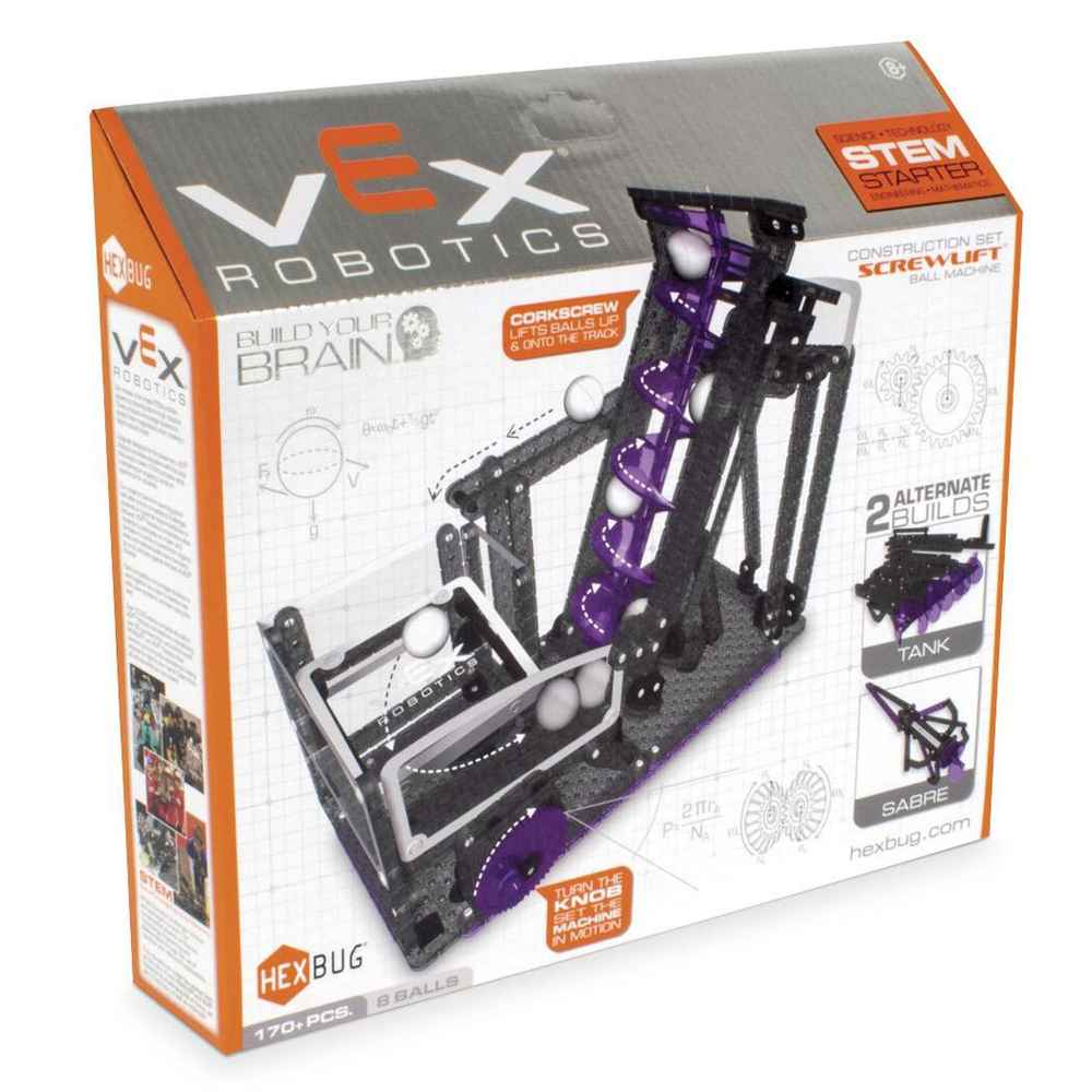 VEX Robotics специализируется на вдохновении будущих поколений инженеров робототехники за счет радостного возбуждения и практического обучения с наборами конструкторов по направлениям наука, технология, инжиниринг и математика (STEM), например, этой машины винтового подъемника шаров VEX Robotics. С помощью этой машины можно изучить важные научные принципы, например, кинематику, действие тяг и возвратно-поступательное движение.