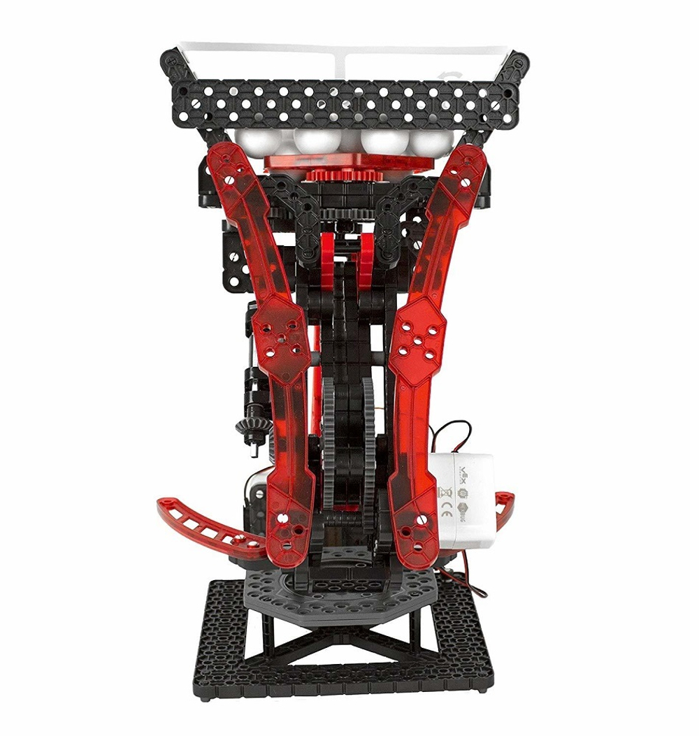 Метательная машина собирается из 300+ деталей и выстреливает шар за шаром со скоростью один шар в секунду (прилагаются 12 шаров). При сборке этой машины, ученики смогут изучить важные научные принципы, например, действие тяг, возвратно-поступательное движение и движение метательных снарядов.