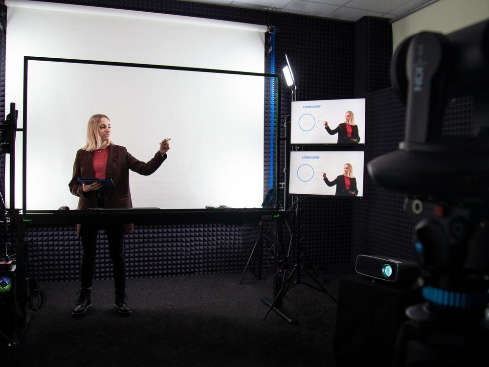 Премиальная видеостудия iDesk PRO в максимальной комплектации для тех, кто хочет лучшее качество. В комплекте видеосвет, доска с электрически регулируемым подстольем, автоматическая система подъёма фонов, две видеокамеры 4К, зона интервью с хромакеем 3х6 и рабочий компьютер в максимальной комплектации.