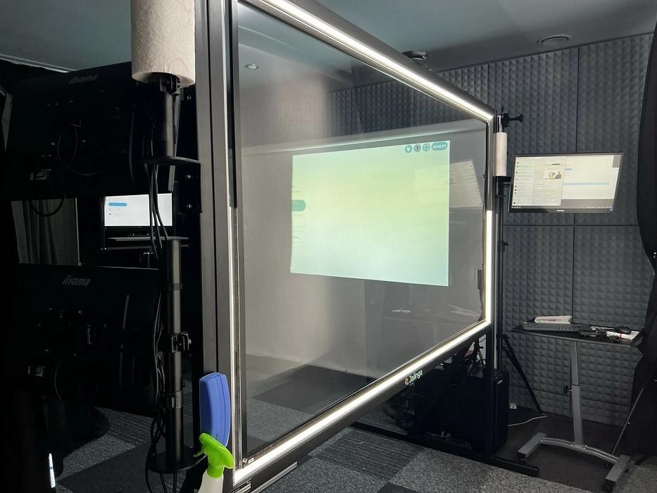 Студия Джалинга имеет всё необходимое оборудование для съёмки качественного видео, в некоторых комплектациях есть и дополнительное оборудование, которое помогает или облегчает запись. Телесуфлёр — это экран, на который выводится текст для спикера. Прямо как в выпусках новостей!