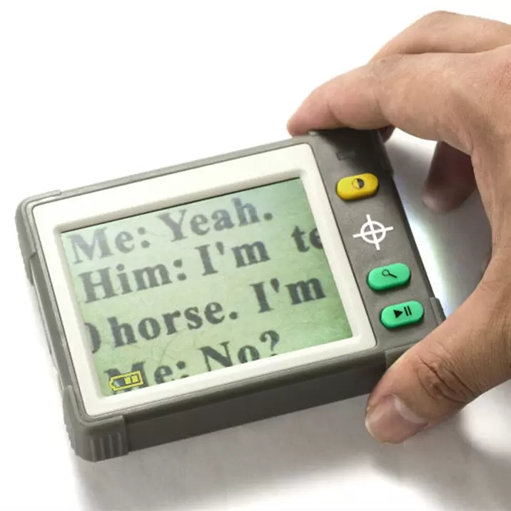 Ручной видеоувеличитель HV-MVC компактен и прост в обращении. Теперь Вы легко сможете прочитать расписание или рецепт, посмотреть и оплатить квитанции, взвесить продукты в магазине, прочитать книгу и просмотреть журнал. Видеоувеличитель имеет семь различных цветовых контрастных режимов. Переключение между ними происходит нажатием одной тактильной кнопки ярко-желтого цвета. В устройстве есть удобная функция фиксации изображения (стоп-кадр), с ней вы сможете детально изучить необходимый текст. Размеры устройства позволят взять его с собой куда угодно и пользоваться им там, где это необходимо.