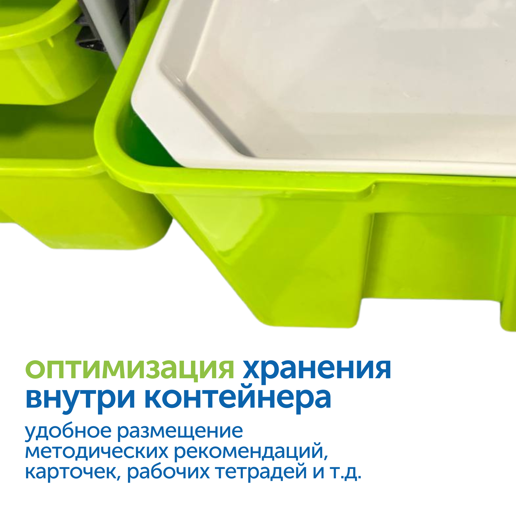 В самом контейнере можно хранить игрушки, а на вкладыше размещать методические рекомендации или тетради учеников. Все необходимые материалы для занятия будут собраны в одном месте и организованы оптимальным образом.