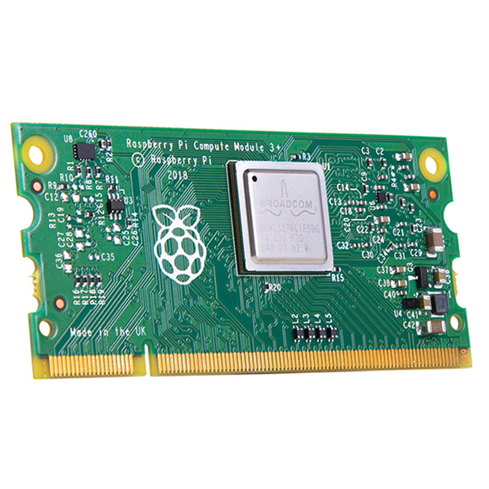 Raspberry Pi Compute Module 3 + (CM3 +) - это механически совместимая с DDR2-SODIMM система на модулях (SoM), содержащая процессор, память, флэш-память eMMC (кроме версии «Lite») и поддерживающую схему питания. Данные модули позволяют использовать аппаратный и программный стек Raspberry Pi в своих собственных системах и форм-факторах. Кроме того, модули имеют дополнительные интерфейсы ввода / вывода сверх того, что доступно на платах A / B модели Raspberry Pi, предоставляя больше возможностей и способствуя быстрой разработке для дизайнера. Вычислительный модуль 3 + 16 ГБ имеет 200-контактную конструкцию SODIMM и содержит 16 ГБ встроенной флэш-памяти eMMC.