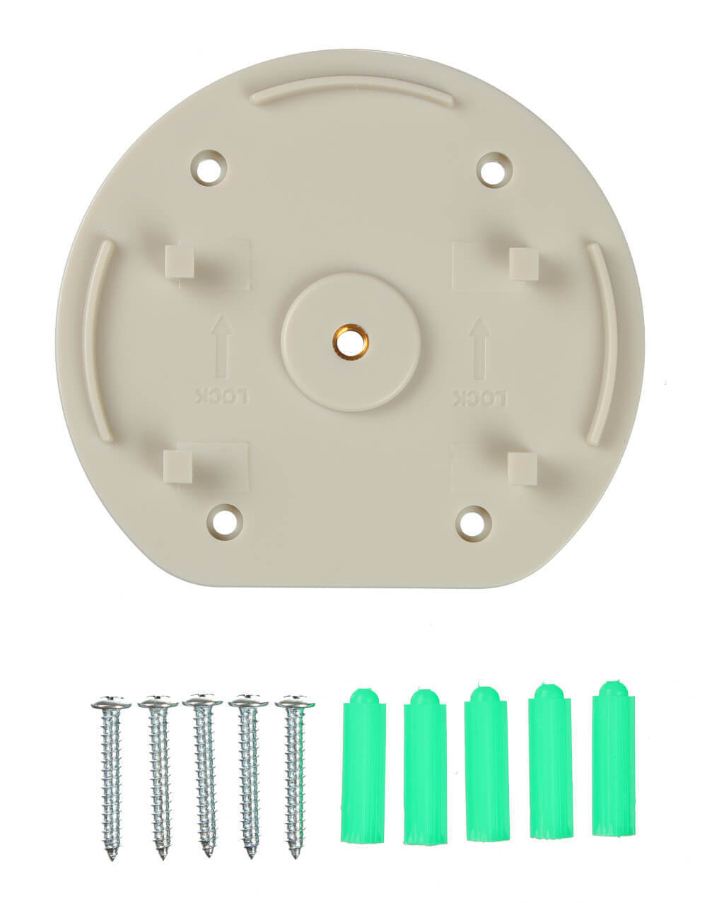 Умная камера устанавливается на монтажную платформу, которая прикручивается шурупами к плоской поверхности. Весь необходимый крепёж в комплекте.