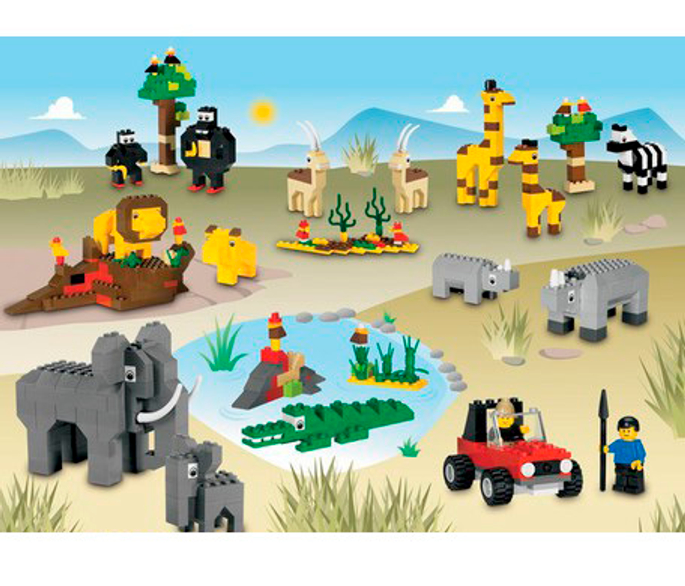 В наборе есть все необходимые элементы для воспроизведения животных подводного мира, саванны, а также домашнего крупного рогатого скота.