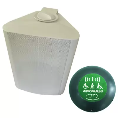 Базовый блок — громкоговоритель — располагается в непосредственной близости от объекта, информацию о котором должен получить слабовидящий посетитель. Корпус устройства выполнен из антивандального пластика и может размещаться как внутри, так и снаружи помещения. Базовый блок надежно защищен от неблагоприятных погодных условий и может применяться в любых климатических зонах. Запись встроенных звуковых сообщений может осуществляться четырьмя способами: с помощью встроенного микрофона, с помощью внешнего микрофона (входит в комплект поставки), с линейного входа, и при помощи USB-flash накопителя. Устройство может подключаться к стандартной 100 вольтовой трансляционной линии и в режиме ожидания работать как обычный элемент голосовой системы оповещения. Базовый блок снабжен встроенным резервным питанием.
